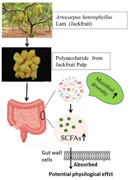 在对菠萝蜜果肉中多糖理化性质及其抗氧化活性研究中,朱科学团队经过菠萝蜜多糖对小鼠肠道微生物的调节作用,分析了肠道内容物短链脂肪酸(包括乙酸、丙酸、丁酸、戊酸等)的变化,发现多糖能够被肠道菌群利用,与肠道微生物相互作用并选择性地增加肠道内的有益微生物数量,发挥其肠道健康调节作用。